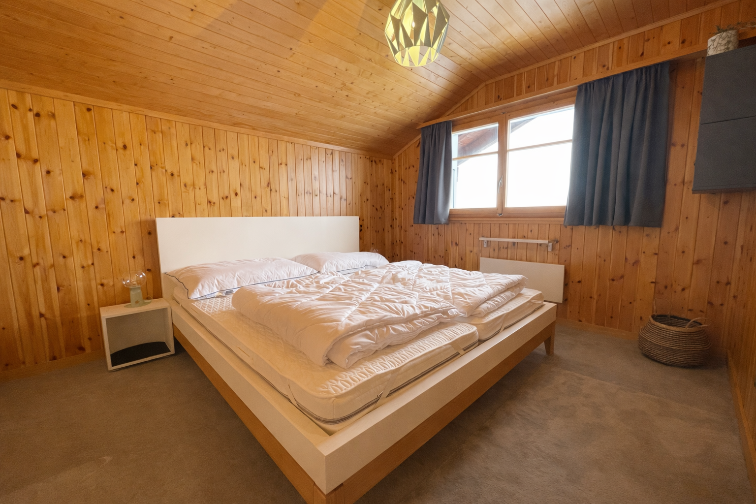 Bärgdohla Attika ist eine charmante Dachgeschosswohnung mit knapp 60 Quadratmetern, zwei Schlafzimmern und einem gut ausgestatteten Bad. Wenn Sie die Wohnung durch den privaten Zugang von der Rückseite des Chalets betreten, werden Sie von einem geräumigen Flur begrüsst, der alle Räume der Chalet-Wohnung miteinander verbindet. Das Badezimmer bietet eine Toilette, eine Badewannen-Dusch-Kombination und ein Waschbecken. Das erste Schlafzimmer ist grosszügig bemessen und verfügt über einen geräumigen Einbauschrank und einem Hochbett (140er Bett unten und 90er Bett oben). Das zweite, nach Süden ausgerichtete Schlafzimmer verfügt über ein bequemes Doppelbett, einen Einbauschrank und einen faszinierenden Blick aus dem Fenster.